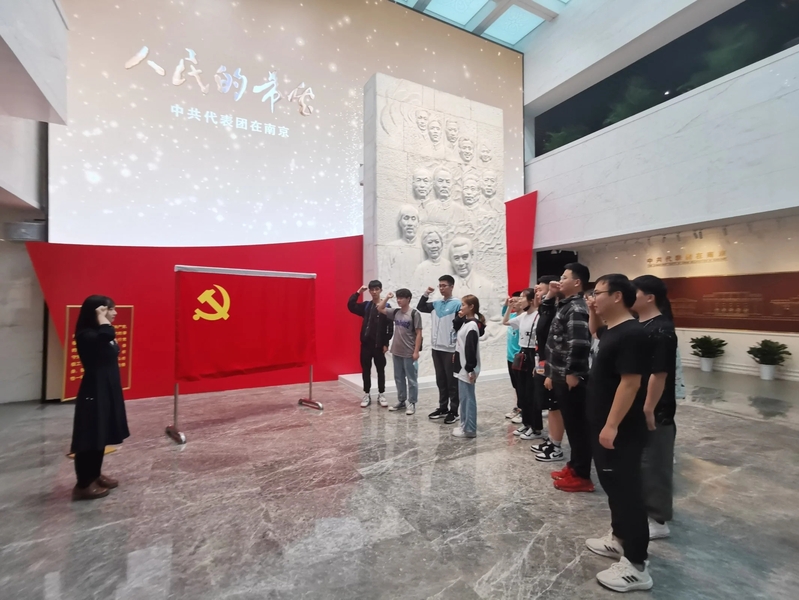 本次活动由云顶国际vip.888电子科学与技术党支部书记孙瑾微老师带队。党员们参观了中国共产党代表团梅园新村纪念馆,并举行了新党员入党宣誓仪式。在鲜红的党旗下,由员工党员任嘉慧同学领誓,7名新进党员进行了入党宣誓,现场的全体党员同志同时也重温了入党誓词。