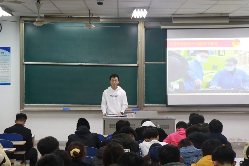 讲座的后半部分,胡韬学长就学习贯彻党的十九届五中全会精神和奋进新时代的学联员工会作全面宣讲。党的十九届五中全会精神催人奋进,站在“两个一百年”奋斗目标的历史交汇点上,党的十九届五中全会科学擘画中国未来五至十年的发展新蓝图,为经济社会发展把脉定向、指路引航。奋进的新时代,奋进的学联员工会。胡韬对学联员工会工作人员改进作风服务同学的若干规定进行了详细说明和强调,并且指出,学联员工会应把握时代主题,紧跟时代步伐,敢于直面挑战,勇于创新,着力增强政治性、先进性、群众性,加强思想政治引领取得新成效,服务同学成长成才取得新进步,改革和自身建设取得新进展,才能为青年健康成长作出示范与表率,焕发出与时俱进的崭新气象,凝聚起实现中华民族伟大复兴中国梦的青春力量。