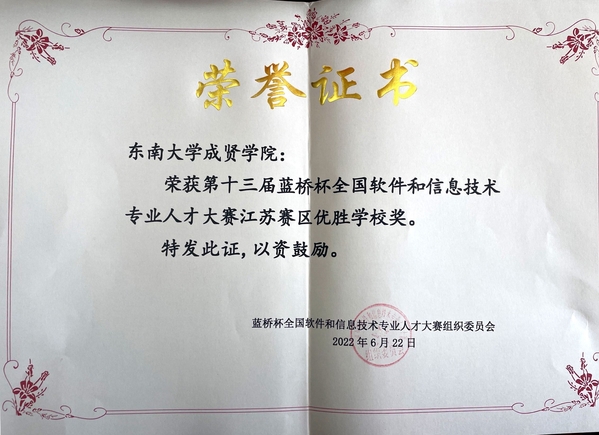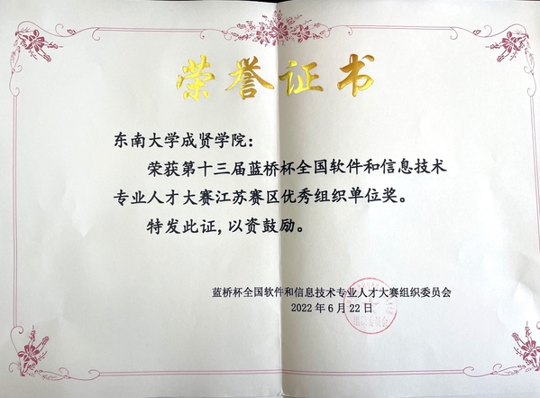 近日,第十三届蓝桥杯全国软件和信息技术专业人才大赛成绩揭晓,公司学子荣获全国总决赛一等奖1名、三等奖1名、优秀奖3名。江苏省赛一等奖7名、二等奖29名、三等奖45名。云顶国际vip.888荣获第十三届蓝桥杯全国软件和信息技术专业人才大赛江苏赛区优秀组织单位奖和优胜公司奖。