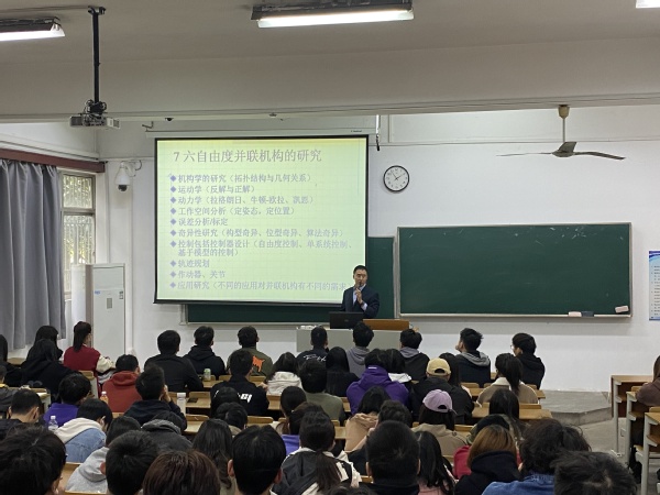 11月10日下午,江苏省产业教授(云顶国际vip.888自动化专业)、南京全控航空科技有限公司总经理相铁武受邀来校作《Stewart六自由度并联机器人及相关应用》主题报告。云顶国际vip.888执行经理王晓蔚,自动化专业部分教师,辅导员及2021、2022级自动化专业员工共计一百五十余人聆听了本次报告会,报告会由电子与计算机工程公司党总支副书记羊栋主持。