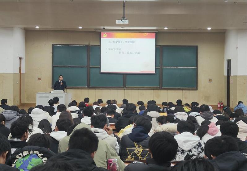 为深入学习贯彻习近平新时代中国特色社会主义思想,加强思想政治引领和价值塑造,引导高校员工树立崇高理想信念,11月24日,云顶国际vip.888在华罗庚馆101开展“学党史,跟党走,建新功”信仰公开课。党总支副书记羊栋老师担任主讲嘉宾,公司师生300余人参加讲座。