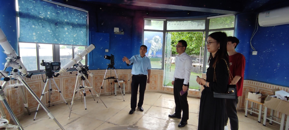 首先,窦文荣老师带领我们参观了少年宫内的天文台和天文教室,并为我们介绍了员工天文科普教学情况、展示了各种类型天文设备。参观结束后,双方在会议室内开展天文科普学习交流会暨党纪学习教育。会上,窦文荣老师介绍了近几年少年宫天文社团的发展情况及取得的成果,以及下一阶段的计划。羊栋副书记从公司概况、学科竞赛、中科院天文台大创项目、考研就业四个方面介绍了云顶国际vip.888的发展情况及取得的成果。