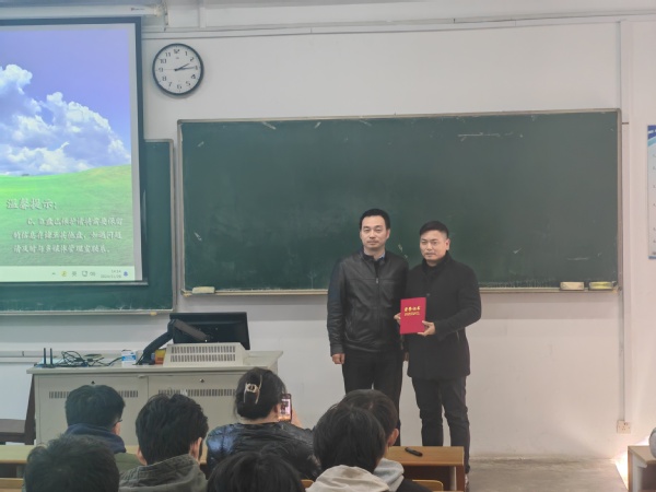 在正式开讲前,电子与计算机工程公司党总支副书记羊栋向窦文荣老师颁发了“天文爱好者协会校外指导老师”聘书。